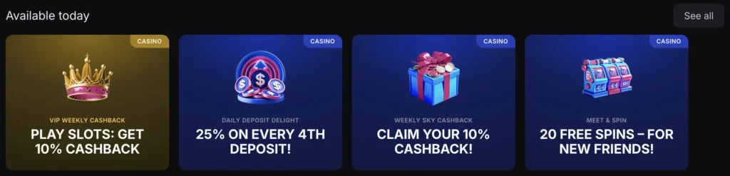 This Sky Crown sign up offer carries standard limitations. One bonus per player, IP address, device and household applies strictly. The best welcome bonus users should note, that promo funds cannot be withdrawn directly, only winnings after wagering completion.